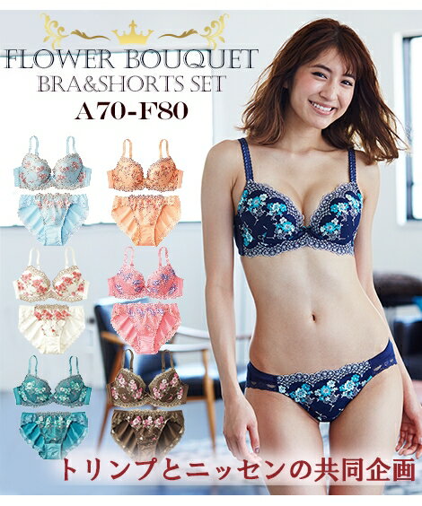 ブラジャー ショーツセット フラワー ブラショーツセット フラワーブーケ柄 ( トリンプ ) ニッセン ブラセット 谷間 盛れる とりんぷ TRN A70 A75 B65 B70 B75 C65 C70 C75 C75 C80 D70 D75 D75 D80 E70 E75 E80 F70 F75 F80 女性 下着 レディース ブラ ショーツ パンツ
