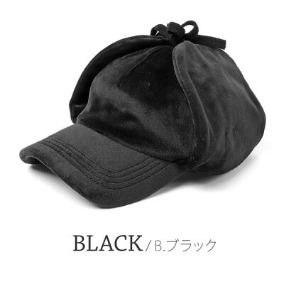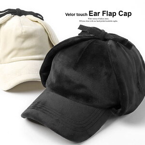 程よい光沢が目をひくベロア調のイヤーフラップキャップ。